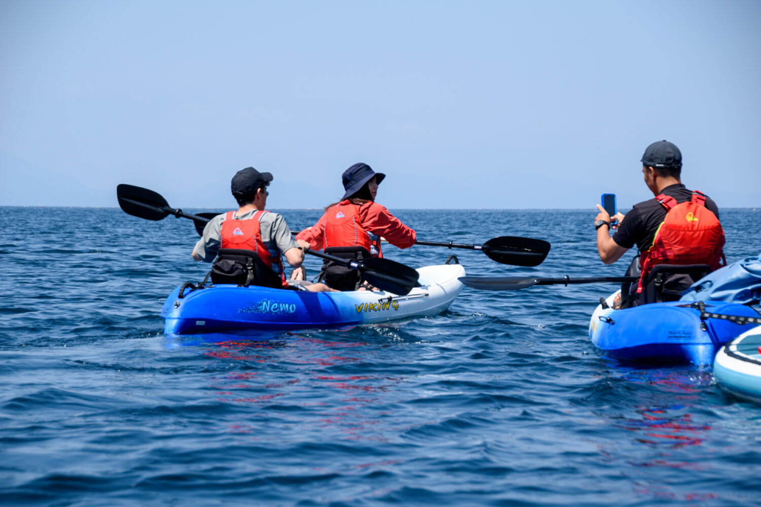 穏やかな海を自分のペースでゆっくり漕げるのでお子様や体力に自信のないかたでも十分に楽しめます。インストラクターが丁寧にレクチャー&ガイドをしますので初めての方でも安心ください。