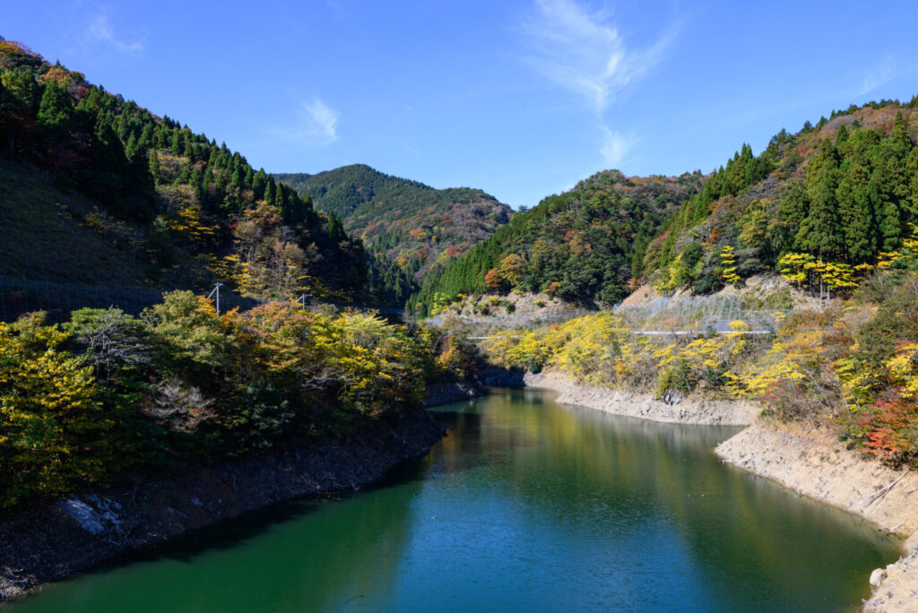 この週末、明神湖の紅葉が一段と鮮やかに色づきました。
